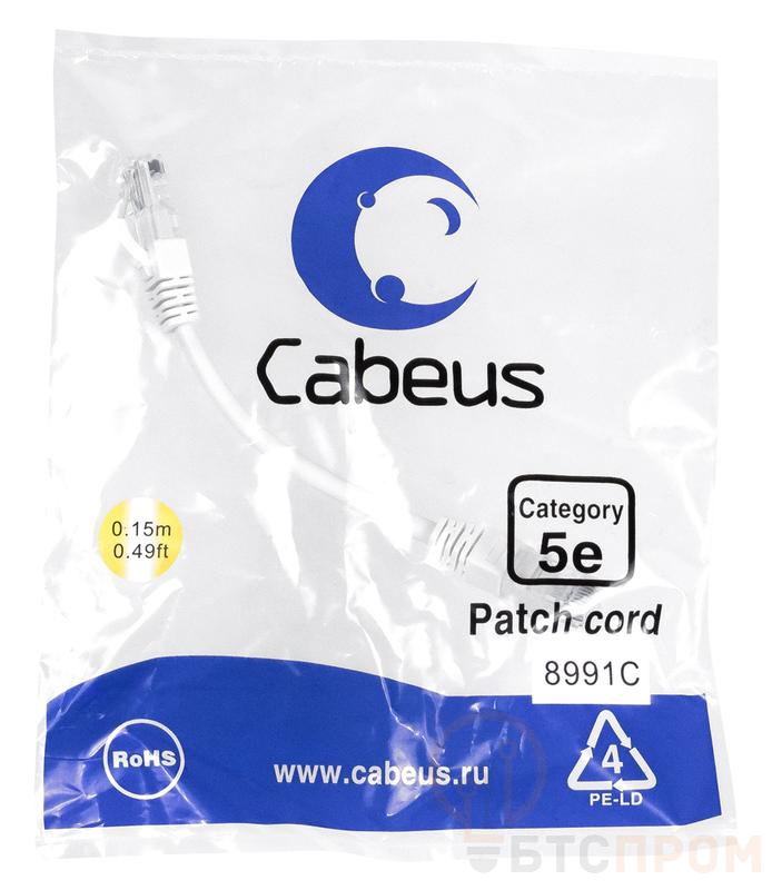 Патч-корд U/UTP кат.5E PC-UTP-RJ45-Cat.5e-0.15m-WH-LSZH 2xRJ45/8p8c неэкранир. LSZH 0.15м бел. Cabeus 9486c