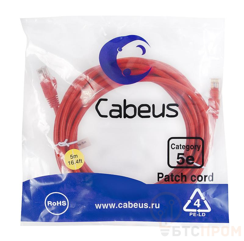 –Патч-корд U/UTP кат.5E PC-UTP-RJ45-Cat.5e-5m-RD 2xRJ45/8p8c неэкранир. PVC 5м красн. Cabeus 7689c
