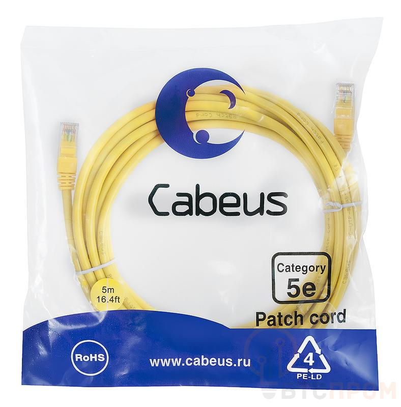 –Патч-корд U/UTP кат.5E PC-UTP-RJ45-Cat.5e-5m-YL 2xRJ45/8p8c неэкранир. PVC 5м желт. Cabeus 7688c