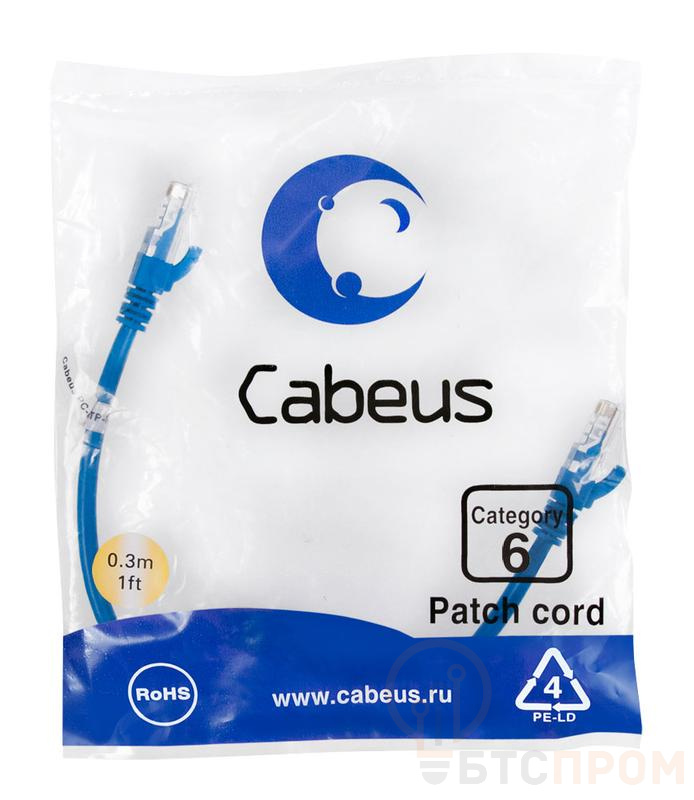 Патч-корд U/UTP кат.6 PC-UTP-RJ45-Cat.6-0.3m-BL 2xRJ45/8p8c неэкранир. PVC 0.3м син. Cabeus 8675c фото в каталоге от BTSprom.by