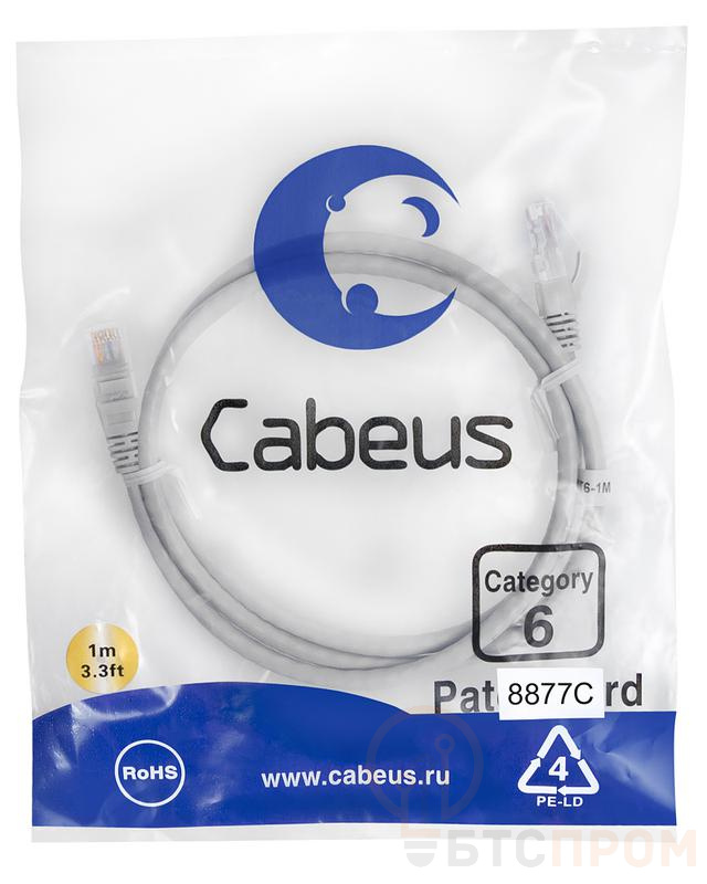 Патч-корд Cabeus 8877c — это неэкранированный коммутационный шнур категории 6, предназначенный для высокоскоростных сетевых соединений. Длина кабеля составляет 1 метр, он оканчивается с обеих сторон коннекторами RJ45 (8p8c).