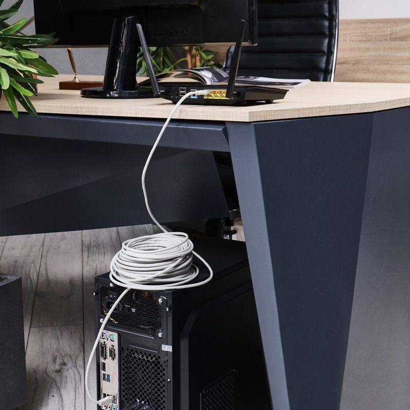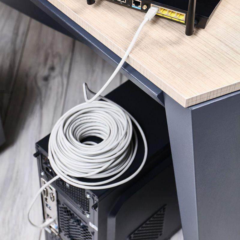 Патч-корд U/UTP длиной 25 метров серого цвета предназначен для подключения активного и пассивного сетевого оборудования в составе структурированной кабельной системы. Позволяет подключить одно электрическое устройство к другому. Представляет собой шнур из 4 пар изолированных проводников, скрученных между собой, находящихся в общей изоляции. С двух сторон располагаются коннекторы RJ45 (8P8C), посредством которых различное оборудование соединяется между собой. Разъемы изготавливаются литыми, что обеспечивает надежное крепление провода в коннекторе. Контакты разъемов имеют напыление техническим золотом, что способствует улучшению пропускной способности сигнала. Колпачки литых разъемов выполнены из нескользящего эластичного пластика. Внешняя изоляция провода изготовлена из ПВХ.