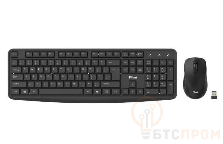 Клавиатура мембранная 104-кл. Windows XP/Vista/7/8/10 MacOS в комплекте мышь оптическая USB 4-кл. DPI: 800/1200/1600 AA 1шт черн. Filum FL-KTW05-BK