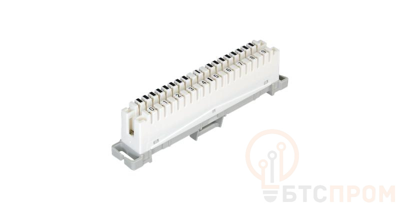 Плинт размыкаемый на 10 пар кат.3 (класс C) 16МГц контакты типа KRONE маркировка 0...9 креплен. под кронштейн и кругл. направляющие бел.(уп.10шт) NIKOMAX NMC-PL10-DU-10