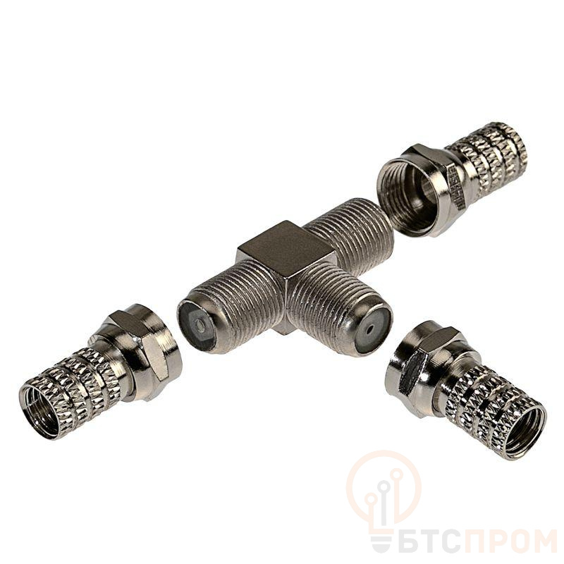 Набор антенных разъемов №5 предназначен для оконцевания кабелей. В наборе 1 переходник (3 гнезда F) и 3 F-разъема RG-6. Разъемы обеспечивают высокую стойкость соединения. Изготовлены из никелированного сплава меди (биметалл). Переходник позволяет разделить сигнал на две равные части и передать его на две линии. Материал изготовления переходника – никелированный цинк, что обеспечивает долговечность соединения и возможность использования в условиях климатических перепадов.