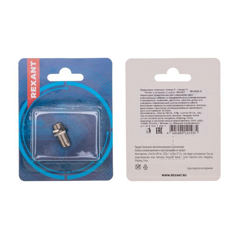Антенный переходник REXANT предназначен для соединения двух частей коаксиального кабеля (50 или 75 Ом), на концах которых расположены штекеры F-разъема. Применяется для подключения эфирного, кабельного и спутникового телевидения к телевизионному оборудованию. Позволяет увеличить длину антенного кабеля или соединить поврежденный участок. Подходит для кабелей типа RG-6 и кабелей SAT-50, SAT-703, DG-113, диаметром 6,8 мм. Относится к типу бочка, поставляется в комплекте с кольцом. Материал изготовления – никелированный сплав первичной меди (биметалл), обеспечивающий долговечность соединения и возможность использования в условиях климатических перепадов. Разъем устанавливается на кабель методом накрутки F-коннектора с обеих сторон после зачистки контактов. Монтаж не требует применения специальных инструментов и пайки контактов: может производиться в удаленном месте (на крышах домов или комплексов. В комплекте поставляется 1 переходник.