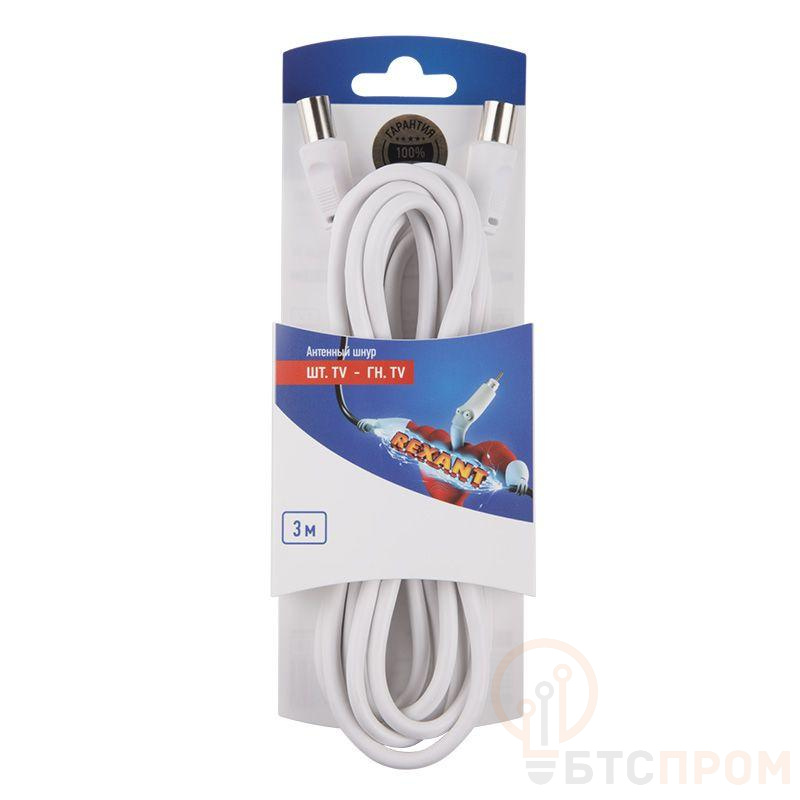 Шнур TV PLUG - TV JACK 3М Белый REXANT предназначен для передачи высокочастотного сигнала к телевизору, спутниковым ресиверам и т.д., а также используют в качестве удлинителя для TV-кабеля. Такой удлинитель незаменим при подключении нескольких телевизоров. C одной стороны шнура располагается штекер TV-разъема, с другой гнездо TV-разъема. Корпус разъемов выполнен из качественного, легкого и прочного пластика. Контакты никелированы и обеспечивают высокий уровень передачи сигнала к оборудованию. Цвет шнура – белый, а длина составляет 3 метра. Профессиональный уровень надежности достигается благодаря применению качественных материалов и высокотехнологичного уровня исполнения шнура.