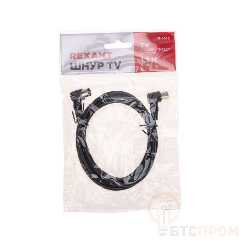 TV удлинитель REXANT предназначен для передачи аналоговых аудио- и видеосигналов телевизионной сети. Позволяет подключить телевизор и другое оборудование (ресиверы, ТВ-приставки и т.д.). к телевизионной розетке. Зачастую используется в качестве удлинителя высокочастотного кабеля для передачи ТВ сигнала от телевизионной антенны. Незаменим при подключении нескольких телевизоров. C одной стороны шнура располагается гнездо TV разъема, с другой – штекер TV разъема. Угловая форма штекера позволяет выполнять подключение оборудования в труднодоступных местах. Разъемы изготовлены из качественного и прочного пластика. Контакты – никелированы, что обеспечивает высокий уровень передачи сигнала к оборудованию. Цвет кабеля – черный, длина – 1,5 м.