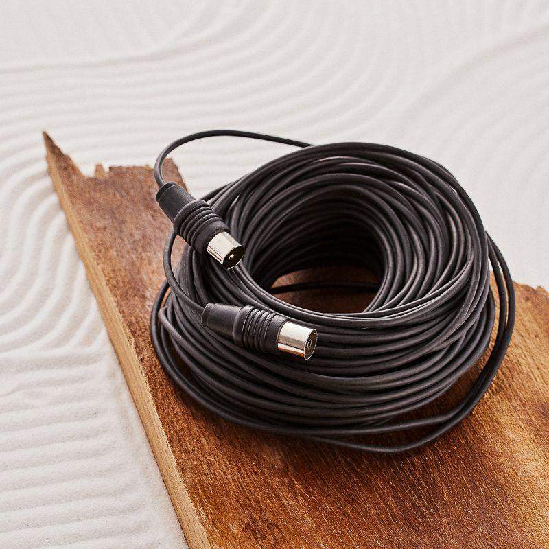 TV удлинитель 25М TV штекер TV гнездо REXANT предназначен для передачи аналоговых аудио и видеосигнала к телевизору, спутниковым ресиверам и т.д. Его используют в качестве удлинителя для TV-кабеля и незаменим при подключении нескольких телевизоров. C одной стороны шнура располагается штекер TV-разъема, с другой - гнездо TV-разъема. Корпус разъемов выполнен из качественного, легкого и прочного пластика. Контакты никелированы и обеспечивают высокий уровень передачи сигнала к оборудованию. Цвет шнура – черный, а длина составляет 25 метров.