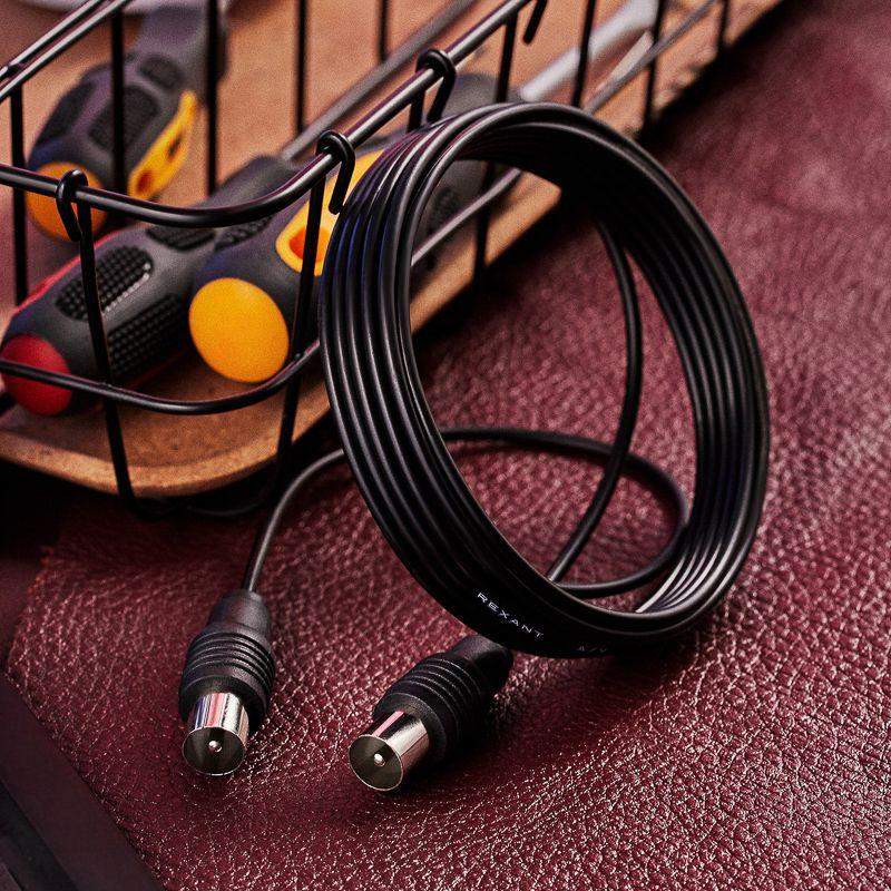 TV удлинитель 3М TV штекер TV штекер REXANT предназначен для передачи аналоговых аудио и видеосигнала к телевизору, спутниковым ресиверам и т.д. Его используют в качестве удлинителя для TV-кабеля и незаменим при подключении нескольких телевизоров. C обеих сторон шнура располагаются штекеры TV-разъема. Корпус разъемов выполнен из качественного, легкого и прочного пластика. Контакты никелированы и обеспечивают высокий уровень передачи сигнала к оборудованию. Цвет шнура – черный, а длина составляет 3 метра.
