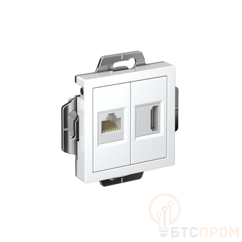Механизм Systeme Electric (ранее Schneider Electric) серии AtlasDesign в цвете белый двойной розетки разъёмами RJ45 категория 5е и HDMI предназначен для удобного и быстрого подключения вашего компьютера и телевизора к соответствующим сетям. Пластик с ионами серебра в белом цвете обеспечивает антибактериальный эффект. Лицевые детали из качественного ABS-пластика, устойчивого к царапинам и УФ-излучению. Усиленные прямые монтажные лапки для лучшей фиксации механизма в монтажной коробке.