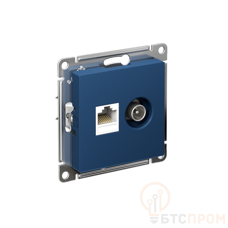 Механизм Systeme Electric (ранее Schneider Electric) серии AtlasDesign в цвете аквамарин двойной розетки разъёмами RJ45 категория 5е и TV предназначен для удобного и быстрого подключения вашего компьютера и телевизора к соответствующим сетям. - Лицевые детали из качественного ABS-пластика, устойчивого к царапинам и УФ-излучению. - Усиленные прямые монтажные лапки для лучшей фиксации механизма в монтажной коробке.