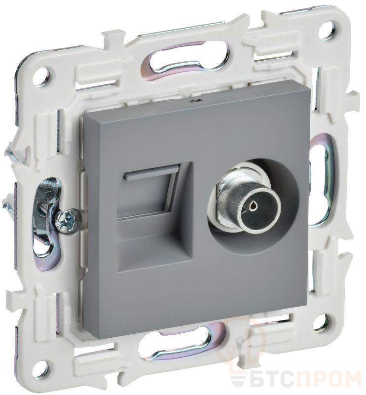 –Розетка двойная TV+RJ45 кат.5E SKANDY SK-A14Gr сер. IEK SK-AK20-1-K03
