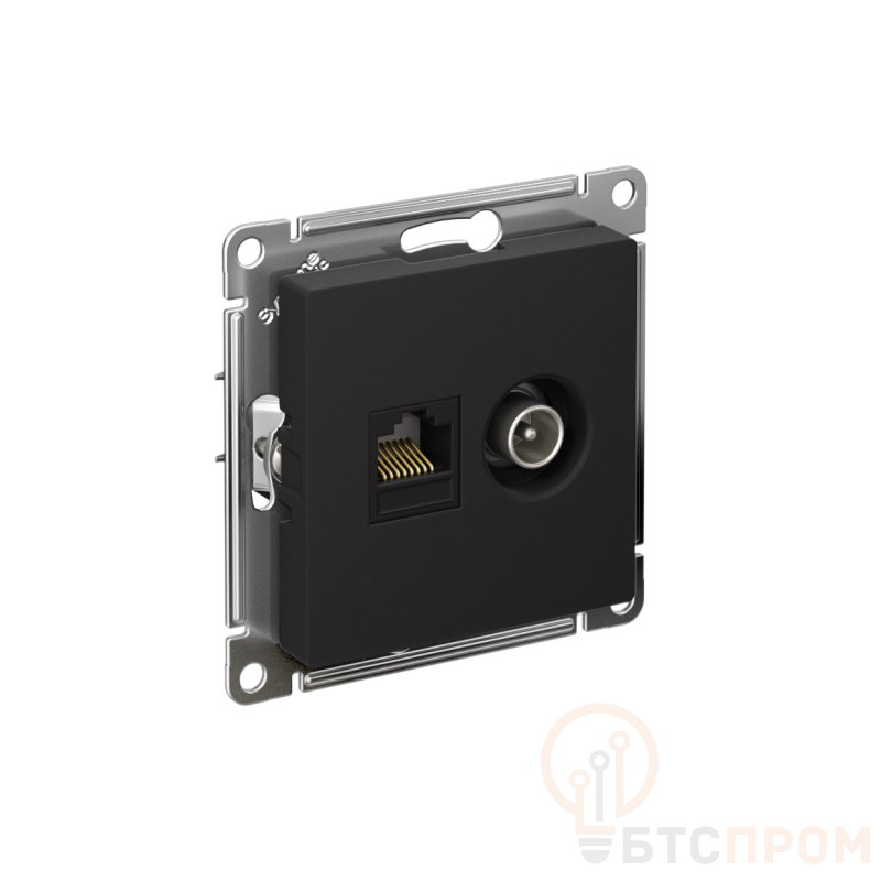 Розетка компьютерная + телевизионная 2-м СП AtlasDesign RJ45 кат.5E + TV механизм карбон SE ATN001089