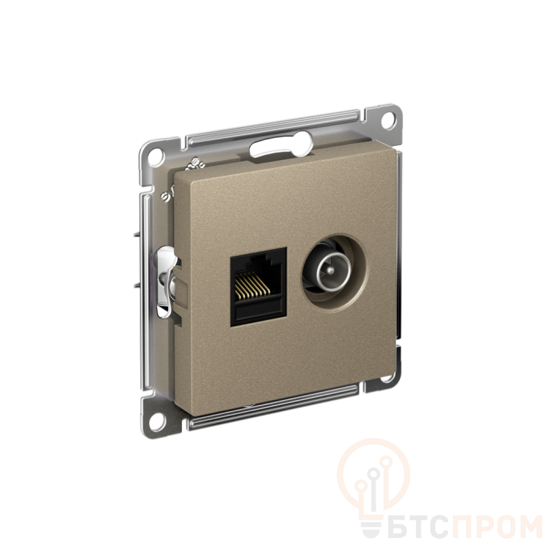 Розетка компьютерная + телевизионная 2-м СП AtlasDesign RJ45 кат.5E + TV механизм шампань SE ATN000589