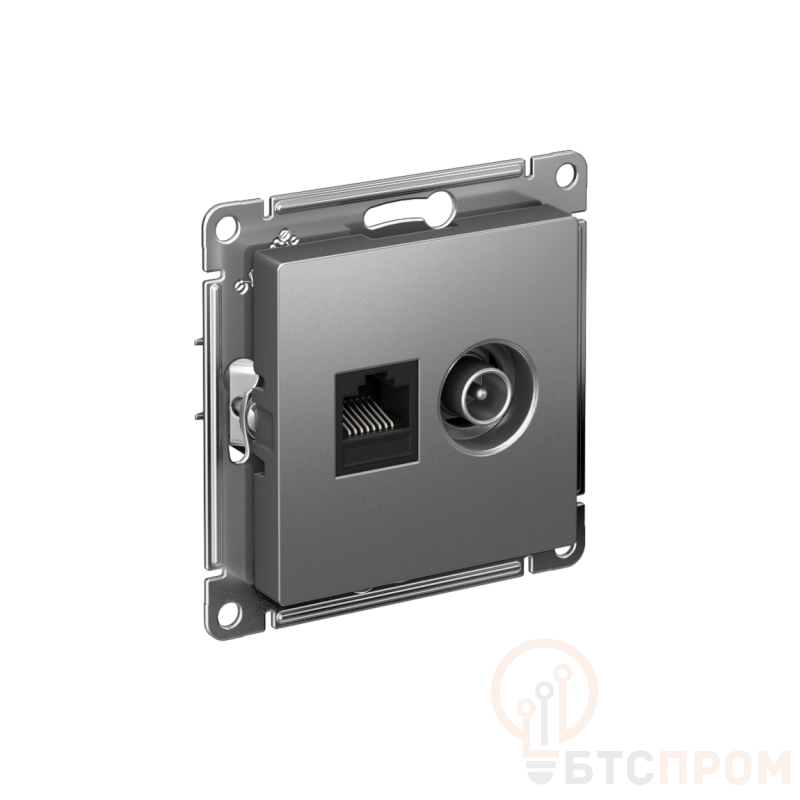 Розетка компьютерная + телевизионная 2-м СП AtlasDesign RJ45 кат.5E + TV механизм сталь SE ATN000989