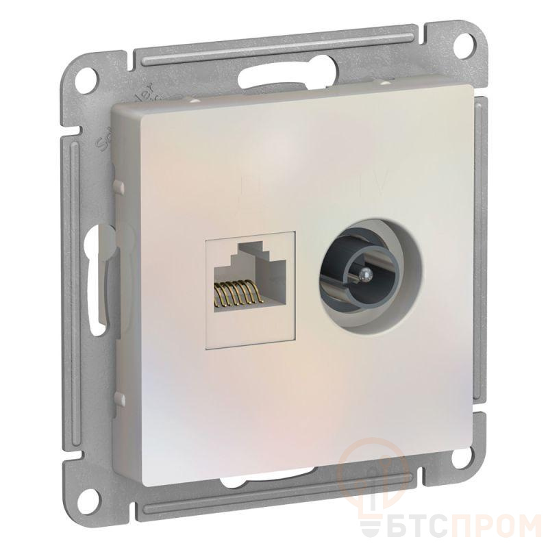 Механизм Systeme Electric (ранее Schneider Electric) серии AtlasDesign в цвете жемчуг двойной розетки разъёмами RJ45 категория 5е и TV предназначен для удобного и быстрого подключения вашего компьютера и телевизора к соответствующим сетям. - Лицевые детали из качественного ABS-пластика, устойчивого к царапинам и УФ-излучению. - Усиленные прямые монтажные лапки для лучшей фиксации механизма в монтажной коробке.