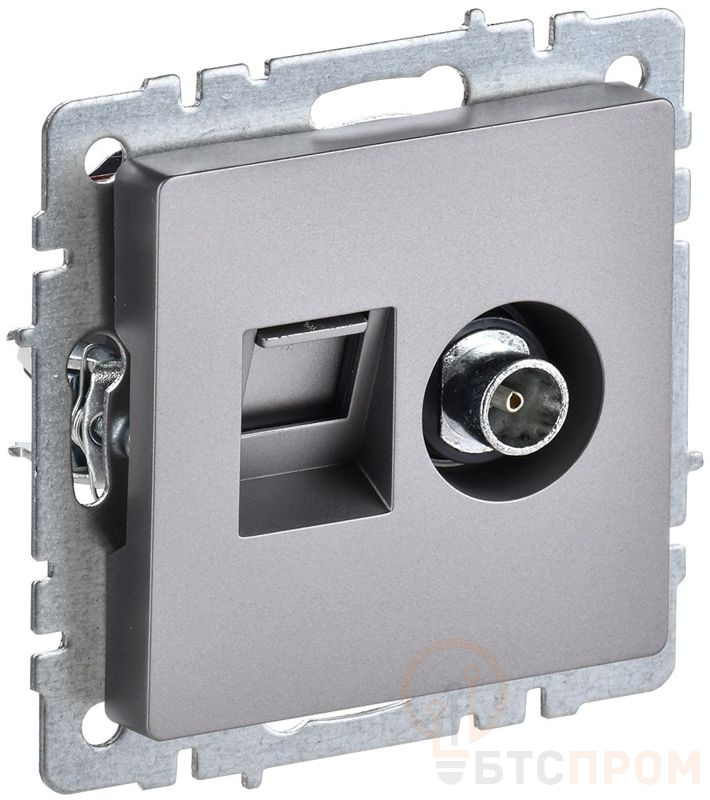 Розетка компьютерная + телевизионная 2-м Brite РТВ/РК12-БрС RJ45 кат.5E + TV механизм сталь IEK BR-AK20-1-K46