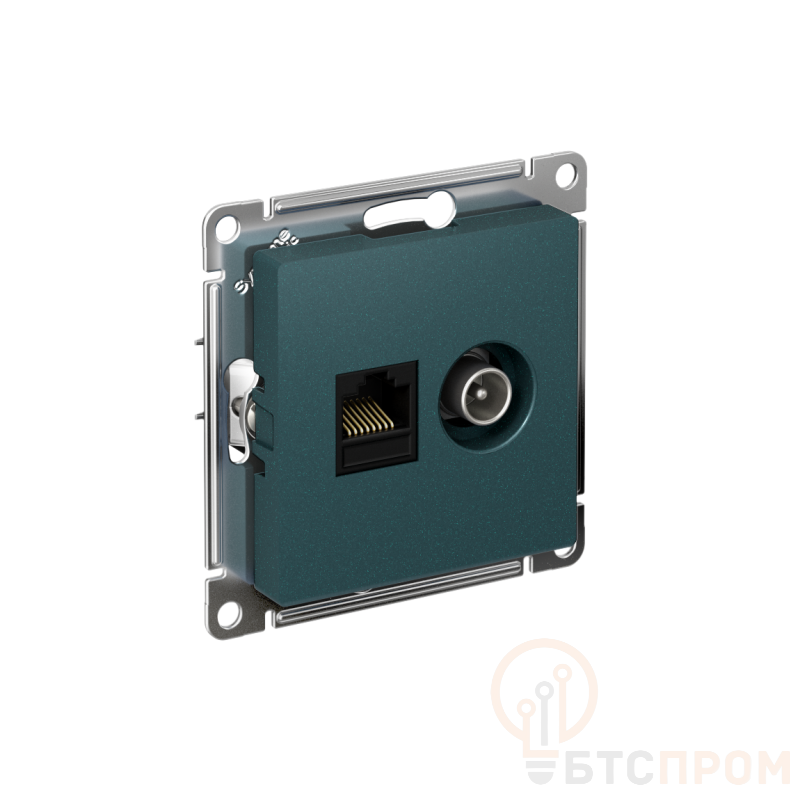 Розетка компьютерная + телевизионная AtlasDesign серии «Изумруд» — это двойной механизм для организации современных сетевых подключений. Модель ATN000889 объединяет в одном корпусе розетку RJ-45 категории 5e для построения локальной сети и высокочастотный TV-разъем.
