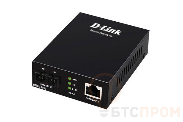Медиаконвертер DMC-F30SC/B1A (1 порт 10/100Base-TX +1 порт 100Base-FX; разъем SC для одномод. оптич. кабеля (до 30км) D-Link 1852329