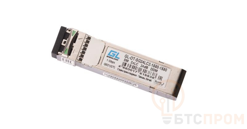 Оптический SFP модуль GL-OT-SG24LC2-1550-1550 - продукт бренда GIGALINK, предназначенный для подключения удаленного участка сети по одномодовому волокну без необходимости использования дополнительного усилителя. GL-OT-SG24LC2-1550-1550 представляет собой Duplex-модуль, основу которого составил интегрированный оптический интерфейс LC и форм-фактор SFP. Используется для передачи данных на высокоскоростных сетях до 1.25 Гбит/с на длине волны 1550 нм. Дальность действия модели достигает 80 км. Трансивер оснащен функцией мониторинга DDM, которая отслеживает работу устройства в режиме реального времени (температуру, принятую и переданную оптическую мощность, а также ток смещения лазера). Конструкция трансиверов позволяет производить «горячую» замену - замена или добавление нового трансивера может быть произведена во время работы коммутатора без отключения локальной сети. Модуль выполнен в прочном металлическом корпусе, что позволяет увеличить срок службы, уменьшить электромагнитные помехи, а также защитит от внешних воздействий. Модуль GL-OT-SG24LC2-1550-1550 станет отличным решением, чтобы обеспечить стабильное высокоскоростное соединение с помощью коммутатора доступа агрегации и ядра сети, маршрутизатора или роутера. Идеальный выбор для серверной или дата-центра. Области применения: Gigabit Ethernet.
