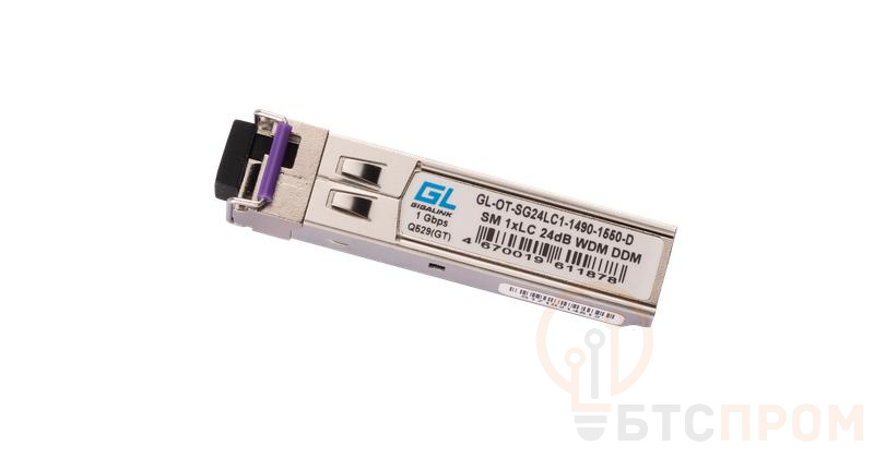 Оптический SFP модуль GL-OT-SG24LC1-1490-1550-D - продукт бренда GIGALINK, предназначенный для подключения удаленного участка сети по одномодовому волокну без необходимости использования дополнительного усилителя. GL-OT-SG24LC1-1490-1550-D представляет собой WDM-модуль, основу которого составил интегрированный оптический интерфейс LC и форм-фактор SFP. Используется для передачи данных на высокоскоростных сетях до 1 Гбит/с на длине волны 1490 нм и приеме на 1550 нм. Дальность действия модели достигает 80 км. Трансивер оснащен функцией мониторинга DDM, которая отслеживает работу устройства в режиме реального времени (температуру, принятую и переданную оптическую мощность, а также ток смещения лазера). Конструкция трансиверов позволяет производить «горячую» замену - замена или добавление нового трансивера может быть произведена во время работы коммутатора без отключения локальной сети. Модуль выполнен в прочном металлическом корпусе, что позволяет увеличить срок службы, уменьшить электромагнитные помехи, а также защитит от внешних воздействий. Модуль GL-OT-SG24LC1-1490-1550-D станет отличным решением, чтобы обеспечить стабильное высокоскоростное соединение с помощью коммутатора доступа агрегации и ядра сети, маршрутизатора или роутера. Идеальный выбор для серверной или дата-центра. Области применения: Gigabit Ethernet.