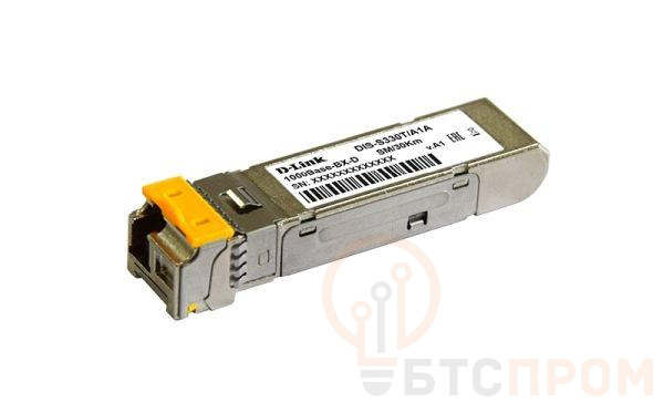 Трансивер SFP промышленный S330T/30KM/A1A WDM с 1 портом 1000Base-BX-D (Tx:1550 нм Rx:1310 нм для одномод. оптич. кабеля (до 30км) D-Link 1607592