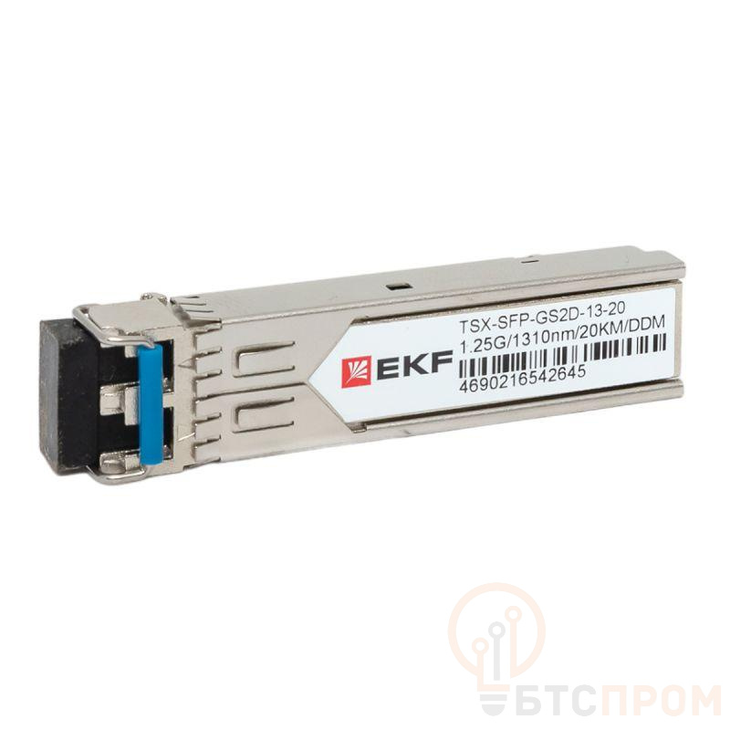 Оптический трансивер TSX-SFP-GS2D-13-20 представляет собой съемный приемопередающий оптический модуль в форм-факторе SFP (Small Form-factor Pluggable), используется для организации каналов связи по протоколам STM-8/OC-24, GigabitEthernet, 1G FiberChannel номинальная скорость передачи данных составляет 1,25 Гбит/с.