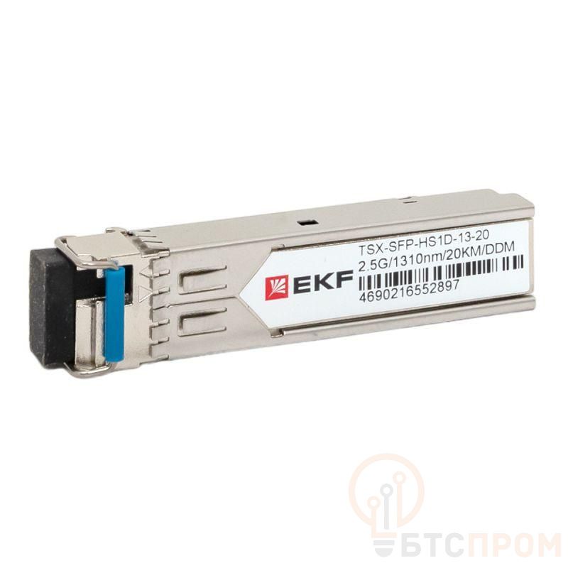 Оптический трансивер TSX-SFP-HS1D-13-20 представляет собой съемный приемопередающий оптический модуль в форм-факторе SFP (Small Form-factor Pluggable), используется для организации каналов связи по протоколам STM-8/OC-24, GigabitEthernet, номинальная скорость передачи данных составляет 2,5 Гбит/с.