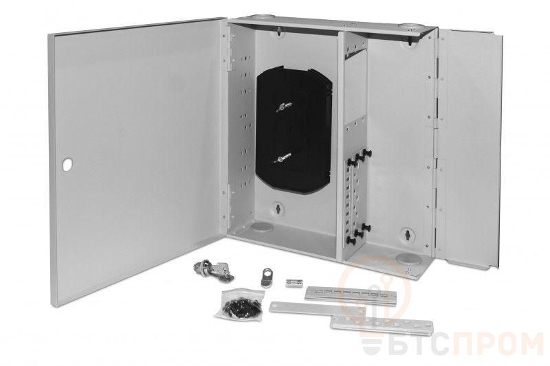 Бокс оптический FO-WBX-6хSLT-W140H42-48UN-GY универс. настенный от 8 до 48 портов (SC duplex LC ST FC) (со спайс. пласт. без пигтейлов. и прох. адапт.) сер. Hyperline 250444