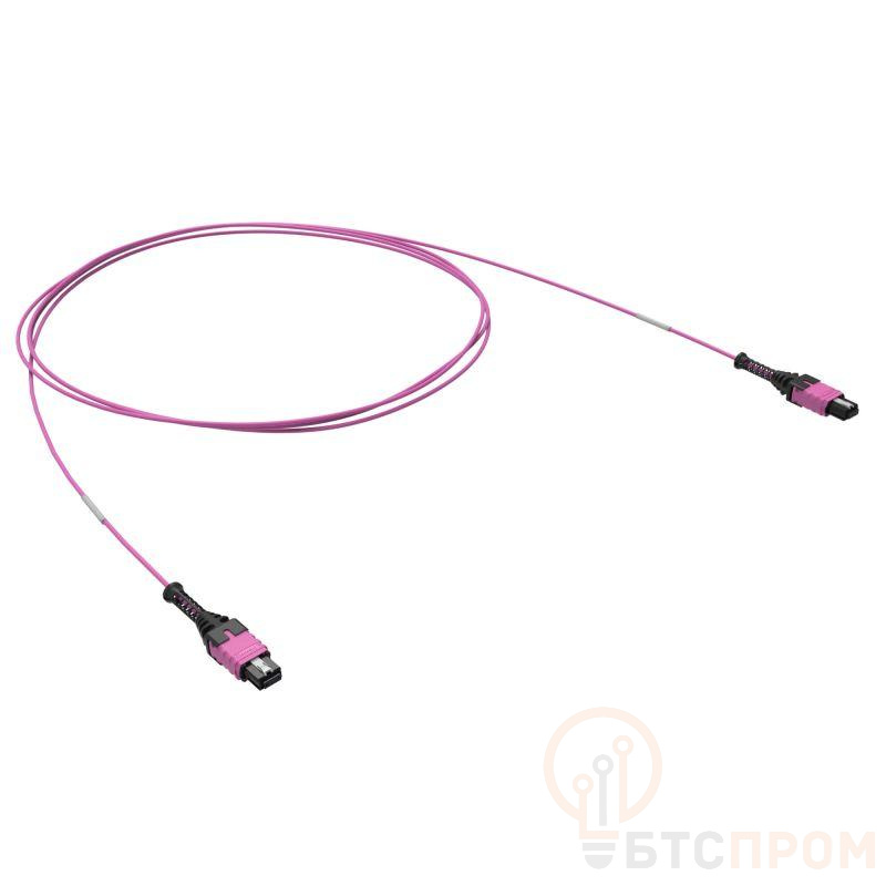 Соединительный оптический шнур (патч-корд), 12 волокон OM4 50/125, коннекторы MTP PRO (12) female (гнездо), полярность типа "В". Передача трафика со скоростью до 100 GB/s. Пониженный уровень потерь на соединении. Цвет оболочки кабеля - пурпурный. Цвет коннекторов - пурпурный. Технология Push-Pull позволяет удобно выполнять подключение и отключение коннекторов к портам панелей высокой плотности. Полировка ферул коннекторов UPC. Коннекторы MTP PRO позволяют менять гендерность с помощью инструмента RNTLGEMTPPRO и набора штифтов RNTLCSMTPSMMA. Длина 1 м