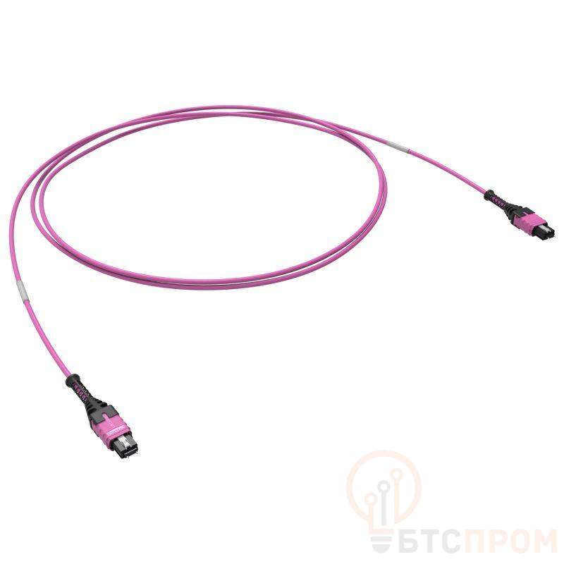 Транковая сборка с двенадцатью оптическими волокнами категории OM4 50/125 мкм в общей оболочке диаметром 3 мм, оконцованная коннекторами типа MTP PRO male с обеих сторон. Полировка ферул коннекторов UPC. Полярность типа ''В''. Коннекторы позволяют менять гендерность с помощью инструмента RNTLGEMTPPRO и набора штифтов RNTLCSMTPSMMA. Длина 10 м