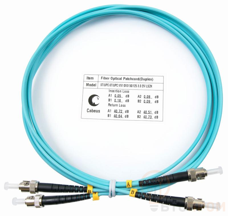 Шнур оптический FOP-50-ST-ST-2m duplex ST-ST 50/125мм OM3 2м LSZH Cabeus 7368c фото в каталоге от BTSprom.by