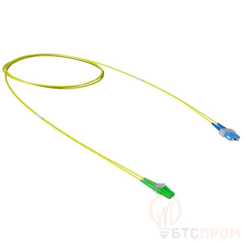 Оптический коммутационный дуплексный одномодовый переходной шнур. Оболочки коммутационных шнуров изготовлены из малодымного безгалогенного компаунда. Характеристики одномодового оптического волокна соответствуют рекомендациям ITU-T G.652.D. Тип коннекторов - SC-LC. Тип полировки - SC UPC, LC APC. Длина - 3 м. Цвет оболочки кабеля - жёлтый