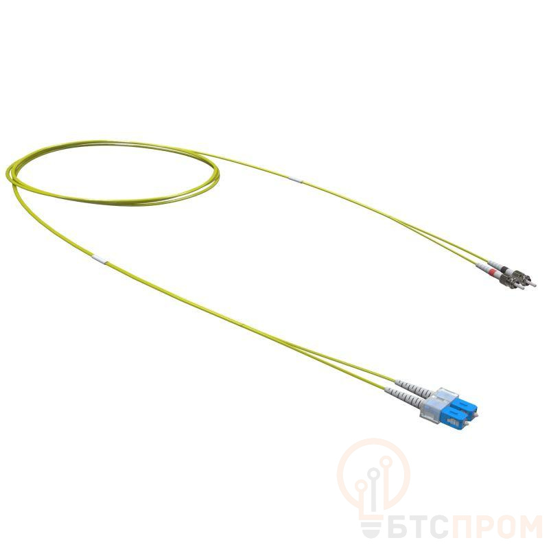 Оптический коммутационный дуплексный одномодовый переходной шнур. Оболочки коммутационных шнуров изготовлены из малодымного безгалогенного компаунда. Характеристики одномодового оптического волокна соответствуют рекомендациям ITU-T G.652.D. Тип коннекторов - SC-ST. Тип полировки - UPC. Длина - 2 м. Цвет оболочки кабеля - жёлтый