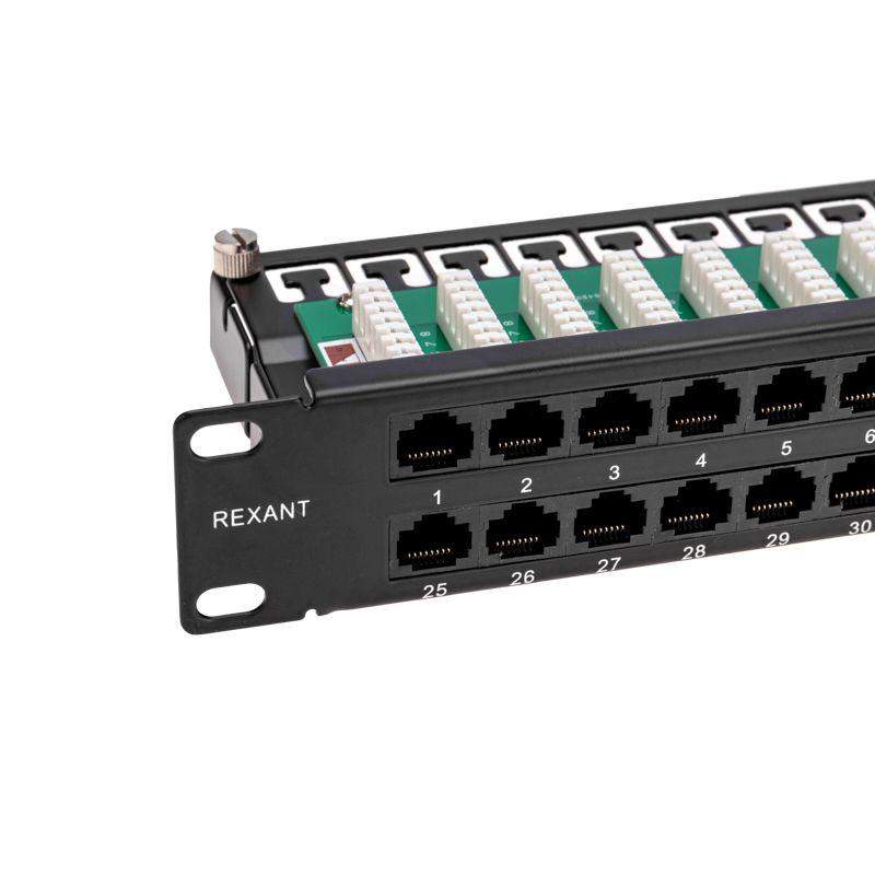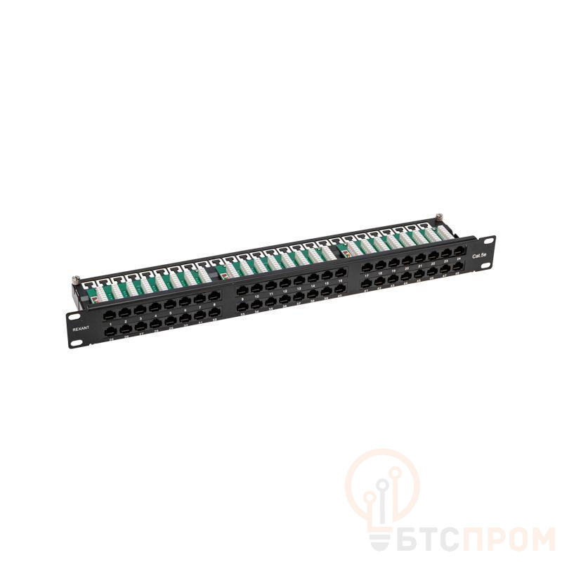 Панель коммутационная высокой плотности с кабельными органайзерами 19дюйм 1U 48 портов U/UTP RJ-45 CAT 5e PRO Rexant 02-0033