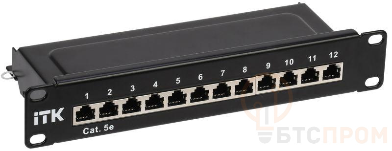 Коммутационные панели или патч-панели являются важнейшей частью любой СКС и IT-инфраструктуры здания и сооружения с большим количеством информационных розеток и терминальных портов конечных пользователей, которые необходимо коммутировать на порты активного сетевого оборудования, размещенного в серверных и распределительных узлах. В зависимости от способа крепления, масштабности кабельной системы, типа сети ITK изготавливает патч-панели для монтажа в 10-дюймовый конструктив, по количеству портов: 8-, 12-, категорий: 5E, 6, 6A, в экранированном исполнении и без защитного экрана. Патч-панели для монтажа в шкаф 10" (254мм) имеют отверстия с левой и правой стороны для крепления на профиль, производятся высотой 0,5 или 1 юнит. На передней стороне все патч-панели ITK имеют специальную площадку для дополнительной маркировки и цифровую нумерацию портов. На обратной стороне модули IDC имеют цветовую и цифровую нумерацию. Также для облегчения монтажа и укладки кабелей выпускаются модификации с кабельным органайзером. Патч-панели соответствуют международным стандартам UL 1863, ISO/IEC 11801:2002, TIA/EIA-568-B, кодировка проводников в соответствии с T568B и A. Поставляются в картонной коробке с крепежом.