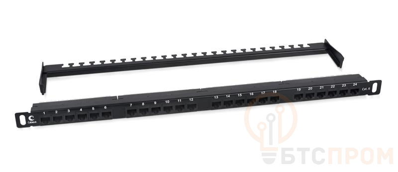 Патч-панель 19дюйм 0.5U 24 порта RJ45 кат.6 Dual IDC 180град. высокой плотности с задн. кабельн. организатором Cabeus 9664c