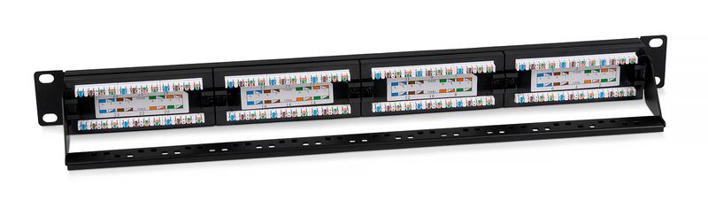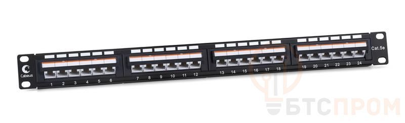 Патч-панель 19дюйм 1U 24 порта RJ45 кат.5E Dual IDC PLAN-24-Cat.5e-Dual IDC угол портов 45град. Cabeus 10190c