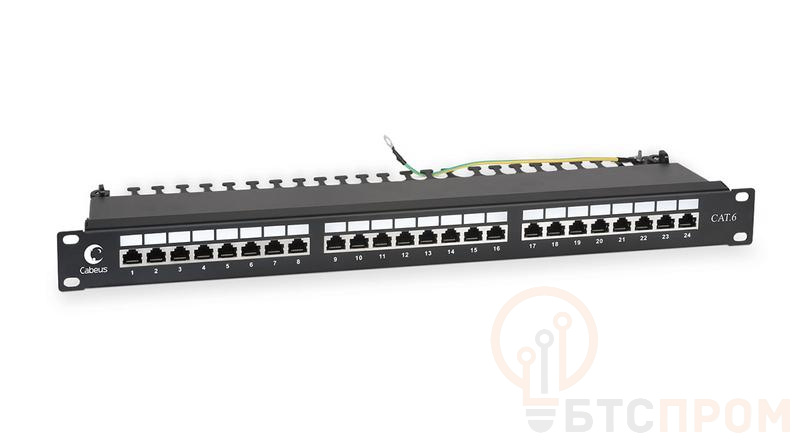 Патч-панель 19дюйм 1U 24 порта RJ45 кат.6 полностью экранир. с задн. кабельн. организатором Cabeus 7234c