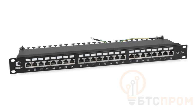 Патч-панель 19дюйм 1U 24 порта RJ45 кат.6A полностью экранир. с задн. кабельн. организатором Cabeus 7653c