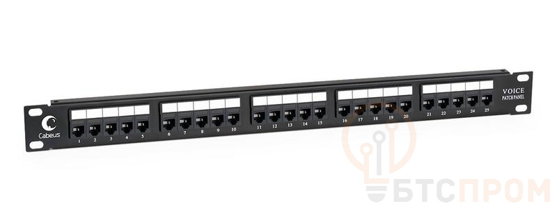 Патч-панель 19дюйм 1U 25 портов RJ11 (6P4C) Cabeus 7990c фото в каталоге от BTSprom.by