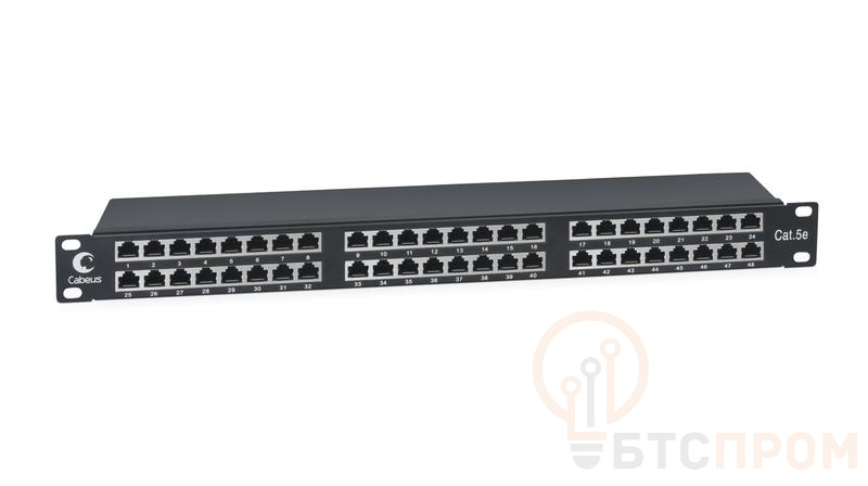 Патч-панель 19дюйм 1U 48 портов RJ45 кат.5E полностью экранир. Dual IDC высокой плотности Cabeus 8890c