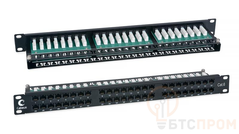 Патч-панель 19дюйм 1U 48 портов RJ45 кат.6 Dual IDC PLHD-48-Cat.6-Dual IDC-1U высокой плотности Cabeus 7777c