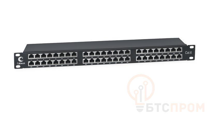 Патч-панель 19дюйм 1U 48 портов RJ45 кат.6 полностью экранир. Dual IDC высокой плотности Cabeus 8891c