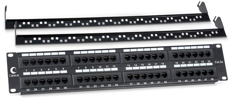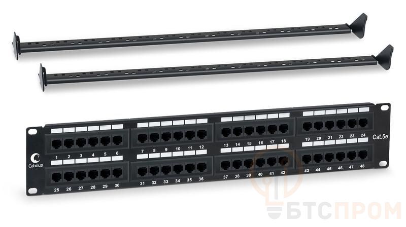 Патч-панель 19дюйм 2U 48 портов RJ45 кат.5E Dual IDC PL-48-Cat.5e-Dual IDC с задн. кабельным организатором Cabeus 7001c