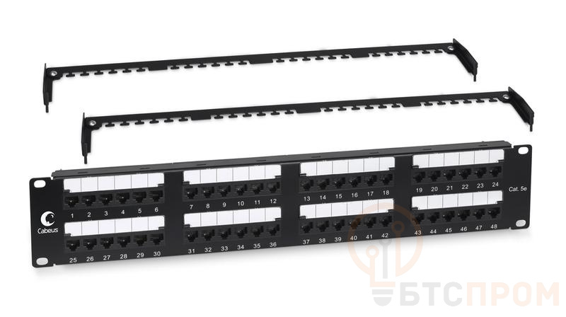 Патч-панель Cabeus 10656c — это 19-дюймовое коммутационное решение формата 2U, оснащенное 48 портами RJ45 категории 5e. Ключевой особенностью модели является технология Dual IDC, позволяющая выполнять подключение кабеля с лицевой и тыльной стороны, что значительно ускоряет монтаж и повышает его удобство.