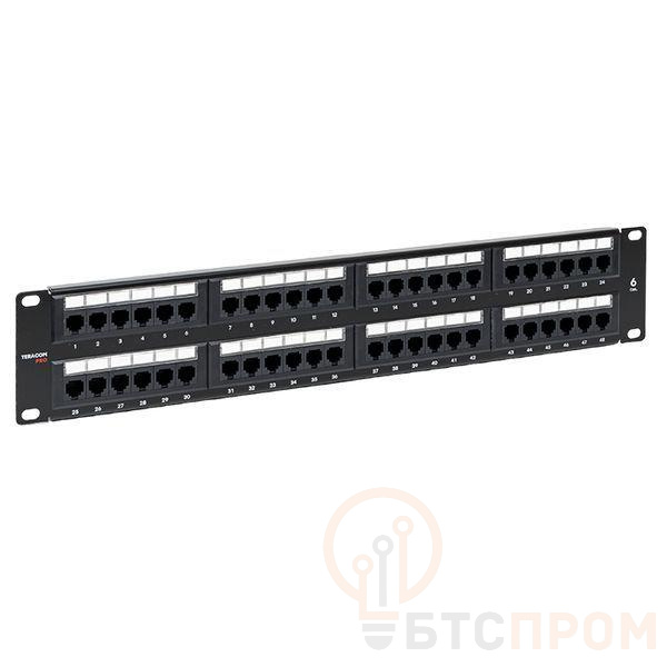 Патч-панель 19дюйм кат.6 2U неэкранированная UTP 48 портов RJ-45 Dual IDC TERACOM PRO EKF TRP-PPNL-6UTP-2U48
