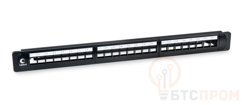 Патч-панель модульная 19дюйм 24 порта 1U для неэкранир. модулей с задним кабельным организатором (без модулей) PLB-24 Cabeus 7956c