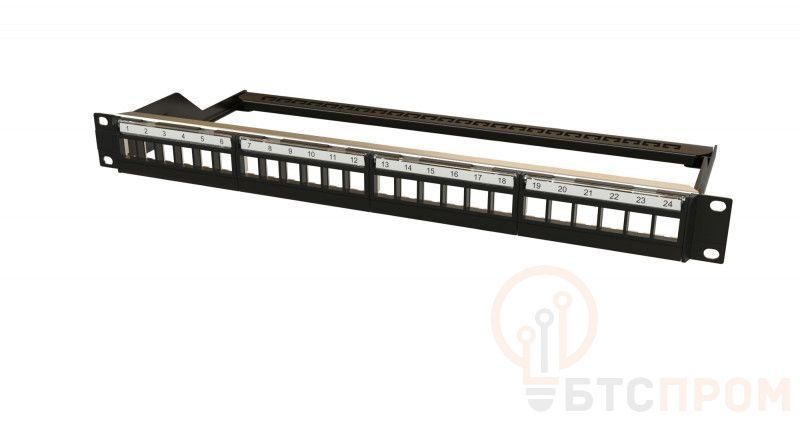 Патч-панель модульная 19дюйм 24 порта 4 съемные панели по 6модулей 1U для неэкранированных модулей с задним кабельным организатором (без модулей) PPBL6-19-24-RM Hyperline 434012